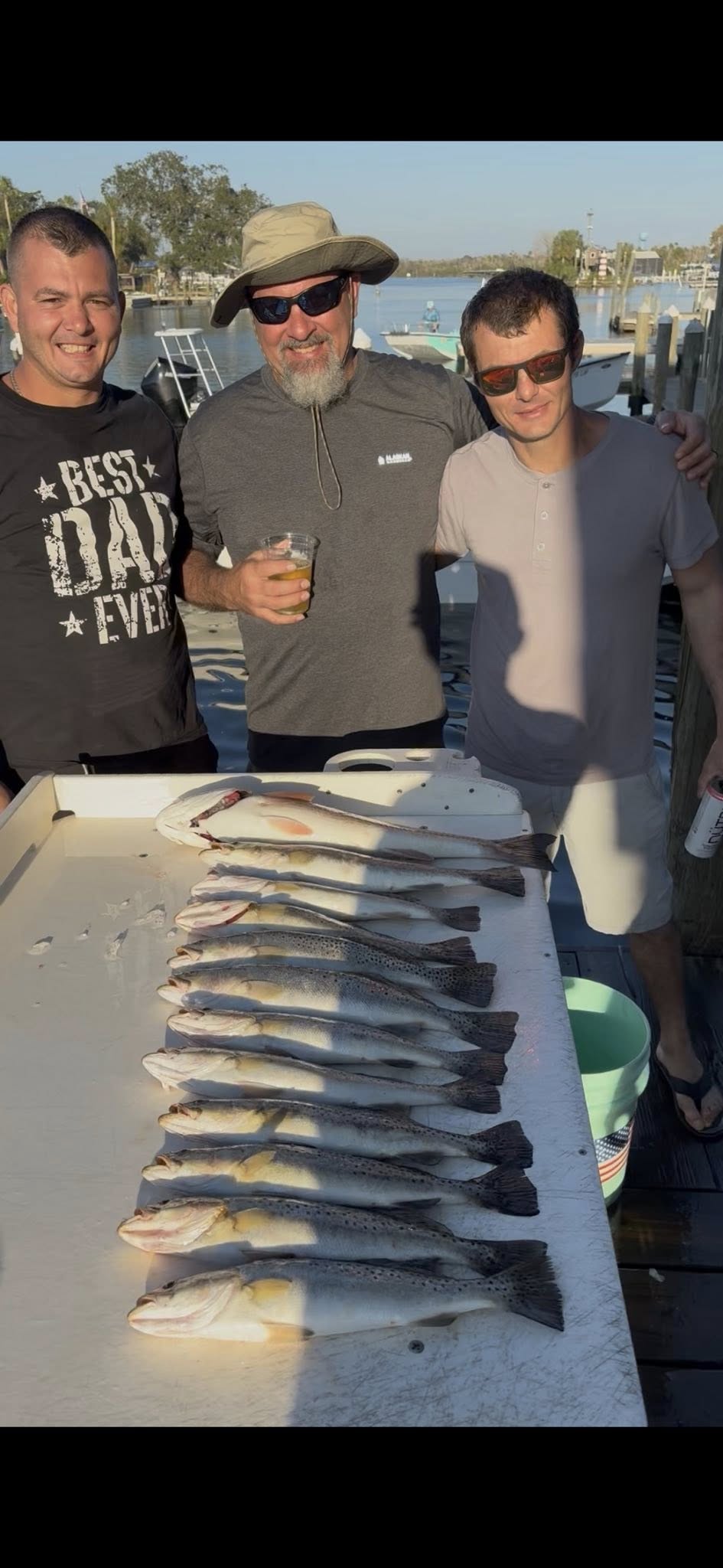 Spotted sea trout are a staple of our grass flats and one of the most consistent fish we target year-round. These speckled beauties typically run 14-18 inches, with keeper-sized fish weighing 1-3 pounds. They love shallow grass flats, especially around drop-offs and deeper potholes in 2-8 feet of water. Early morning and late evening are prime feeding times, and they stay active through most seasons, though spring and fall offer the best action. What makes trout special is their willingness to hit both live bait and artificials, plus they're excellent eating with tender, flaky meat. They're also great for beginners since they're forgiving and fight well for their size. Key tip: work your bait slowly over the grass beds and pay attention to any deeper holes or channels - that's where the bigger trout like to hang out and ambush prey.